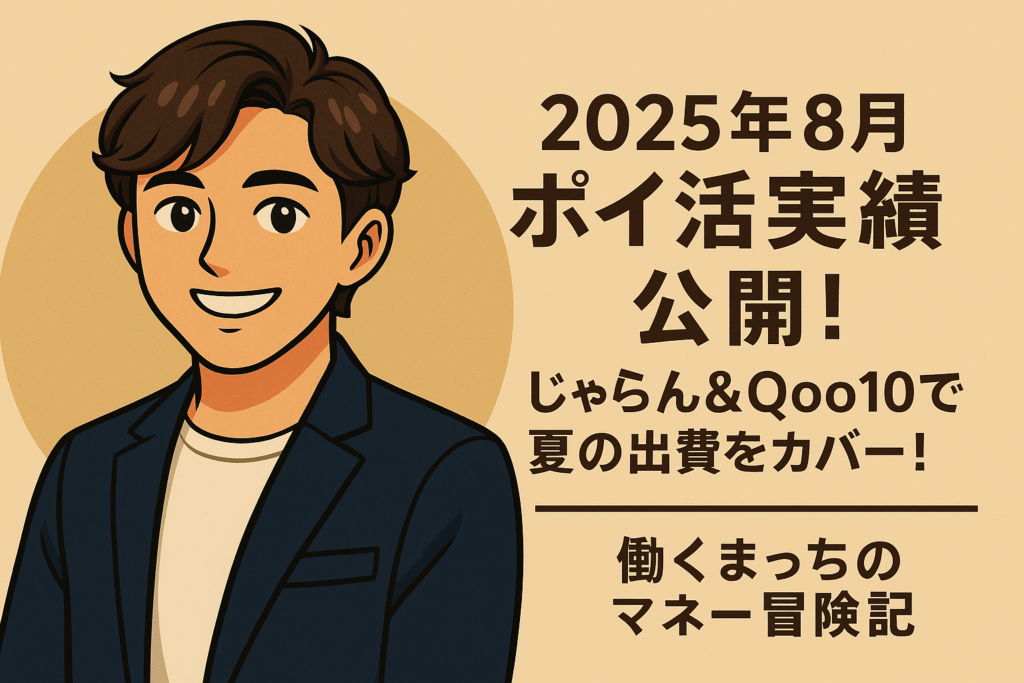 こんにちは、働くまっちです!毎月恒例の「ポイ活実績公開」シリーズ、第3回をお届けします。 8月は夏休みや旅行などで出費が増える時期でしたが、じゃらんやQoo10など、お得な案件をうまく活用して高ポイントを獲得できました!BitWalkは算出が難しかった... -